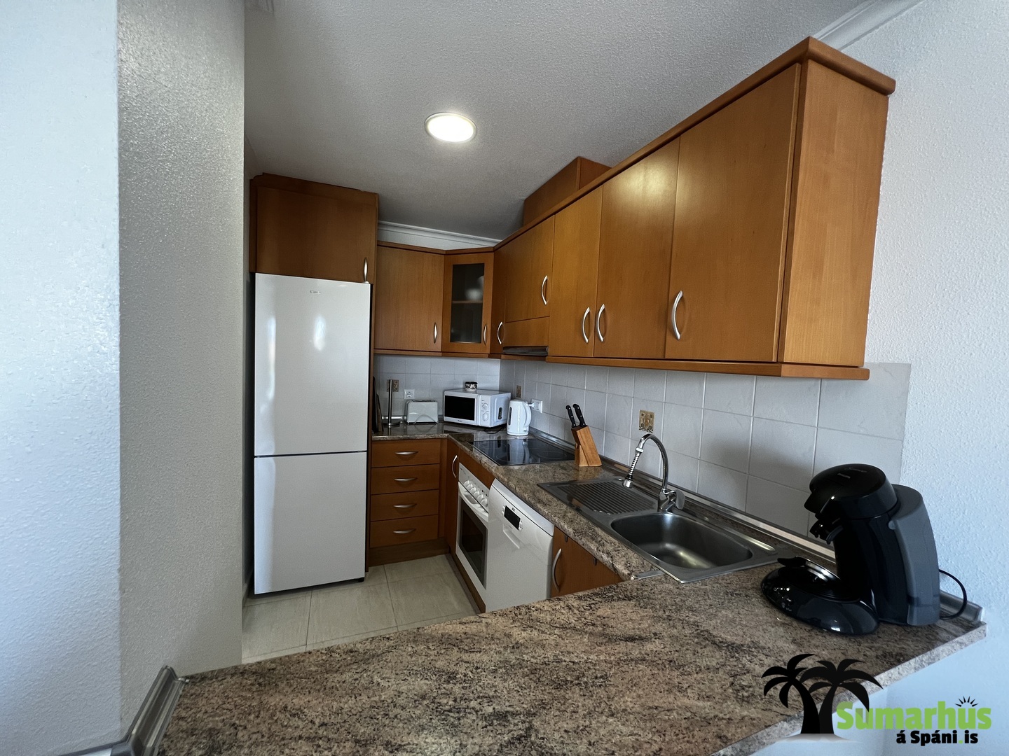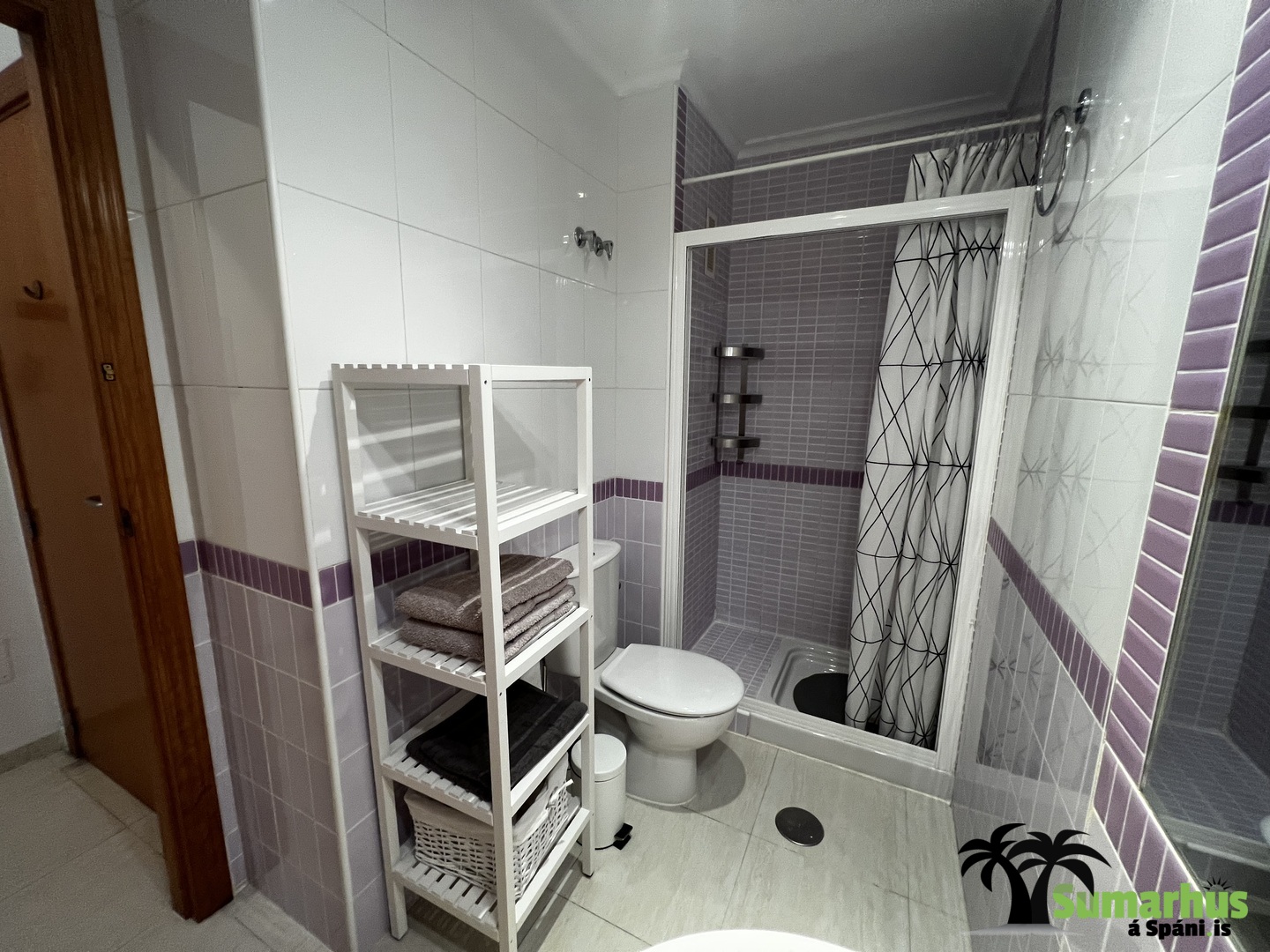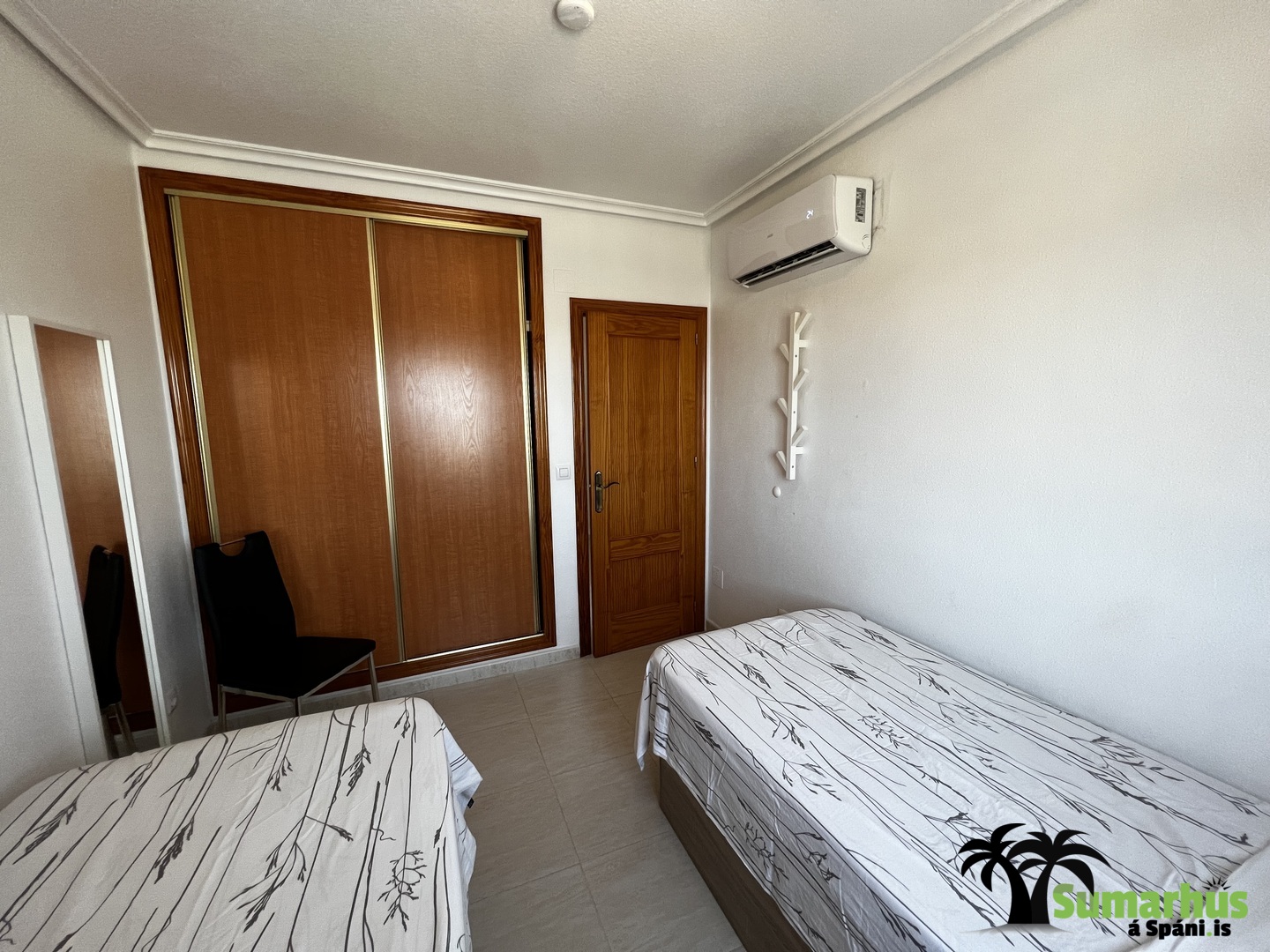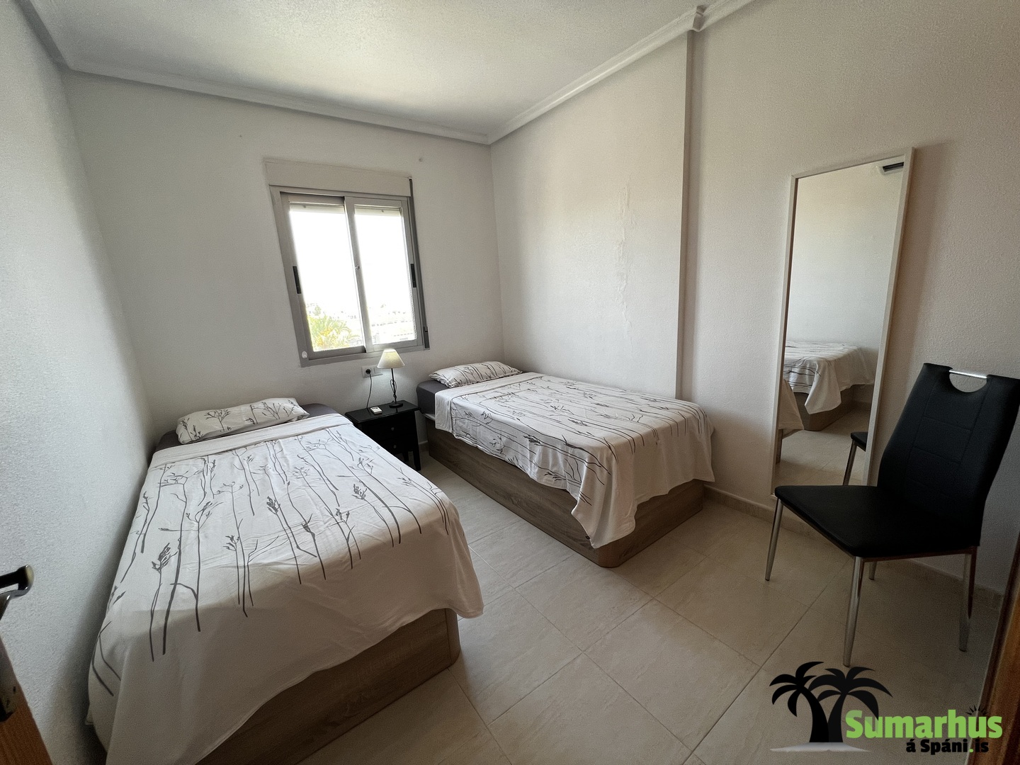 Sængur eru í íbúðinni sem gott er að nota á vorin og yfir vetrartímann. Einnig er barnaferðarúm ásamt matarstól.