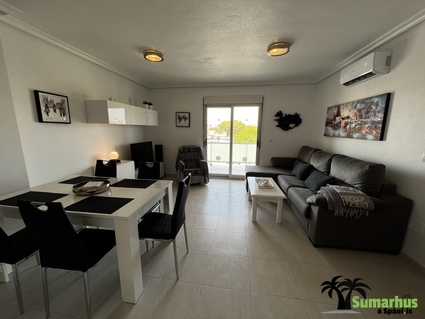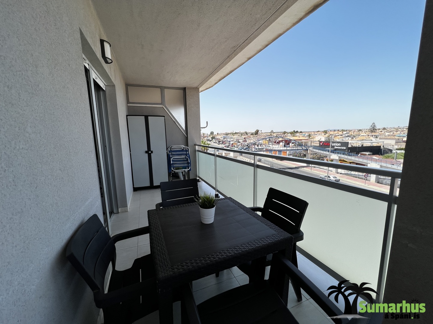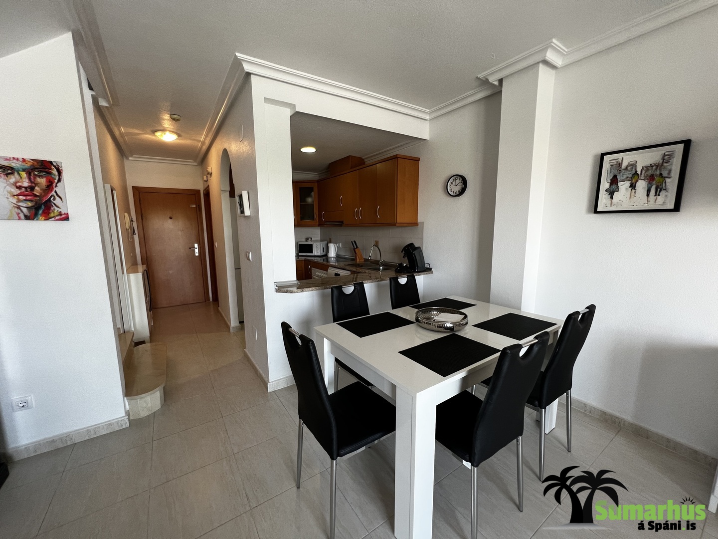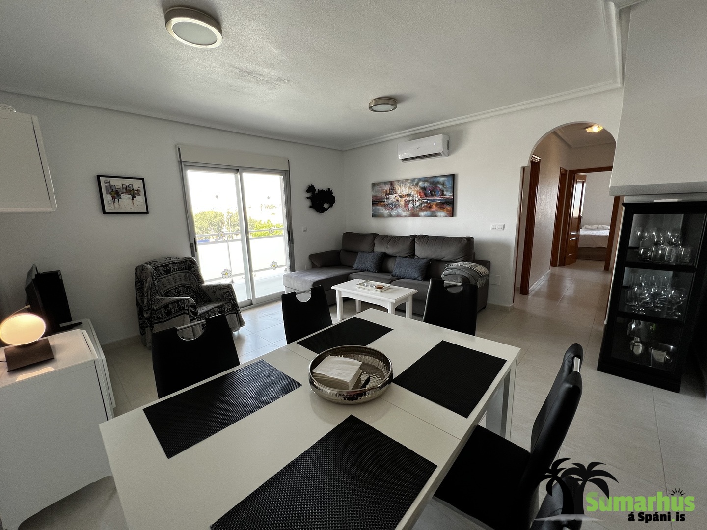 Íbúðin er á besta stað í Cabo Roig á La Rotonda íbúðarhótelinu.  Matvöruverslanir og veitingastaðir eru í göngufæri og stutt að skreppa á ströndina, fimmtudagsmarkaðinn, fjölmarga golfvelli og yfir í La Zenia verslunarmiðstöðina.  Einnig fylgir aðgangur að bílastæði í bílakjallara..  Íbúðin er mjög vel skipulögð og vel búin, WiFi, loftkæling, góð rúm og allt til alls.  Eldhúsið er bjart og vel búið með ísskáp, uppþvottavél, kaffivél, brauðrist, hraðsuðukatli og helstu áhöldum til matargerðar.  Falleg björt stofa sem einnig er borðstofa og opið er inní eldhúsið.  Í stofunni er sófi og snjallsjónvarp svo geta gestir t.d. skráð sig inná sitt NETFLIX.  Frá stofu er rennihurð út á svalir.