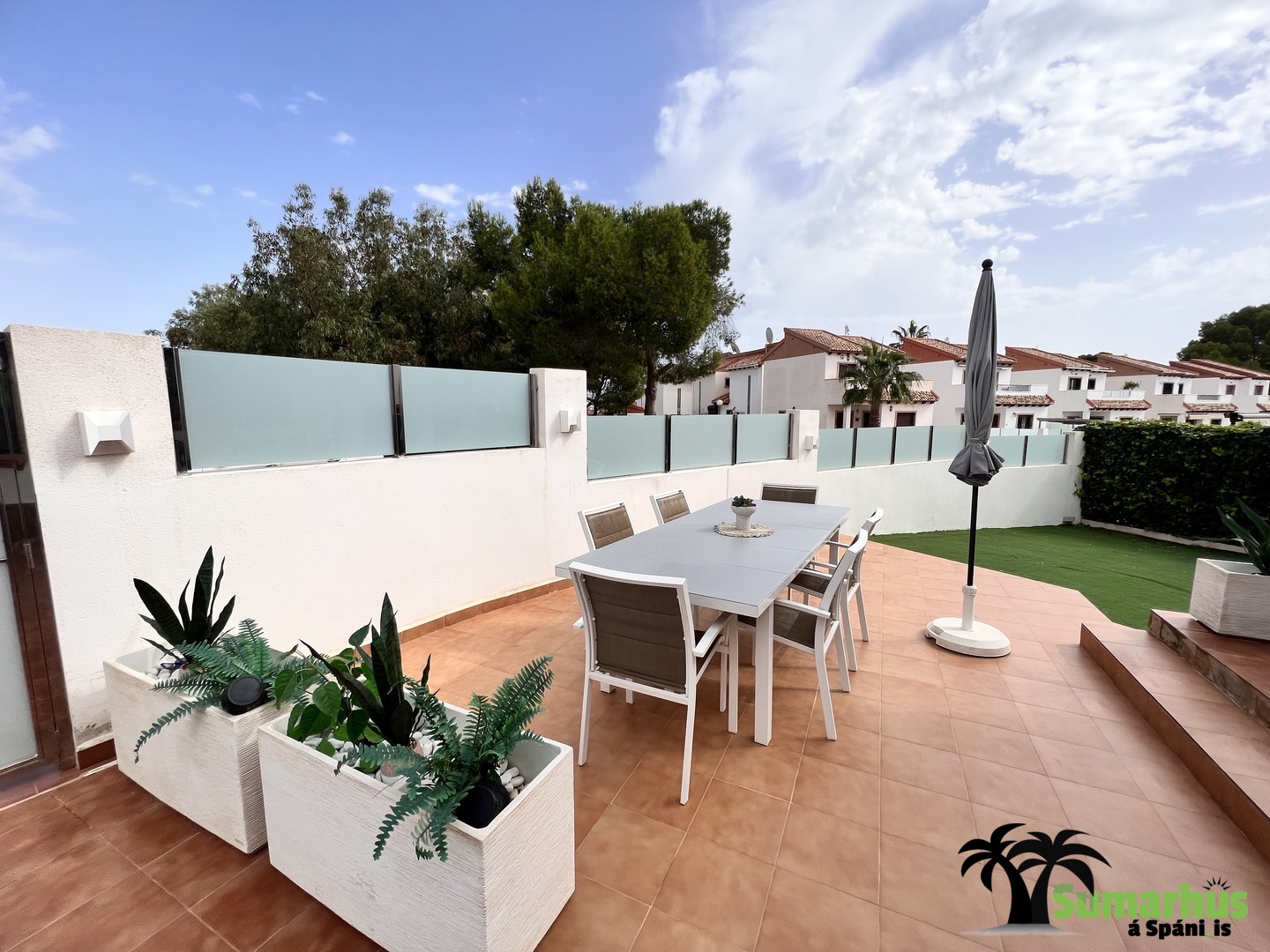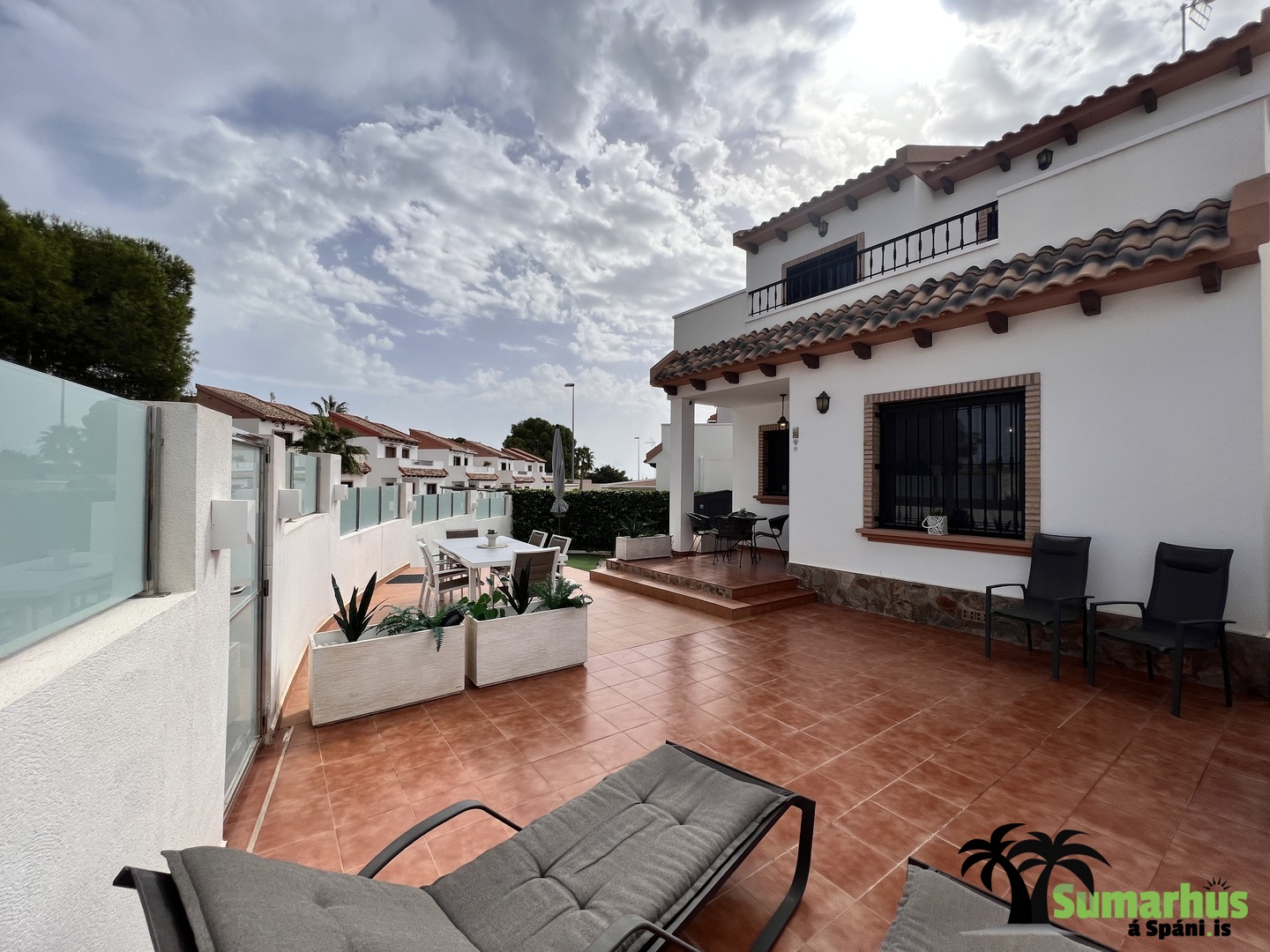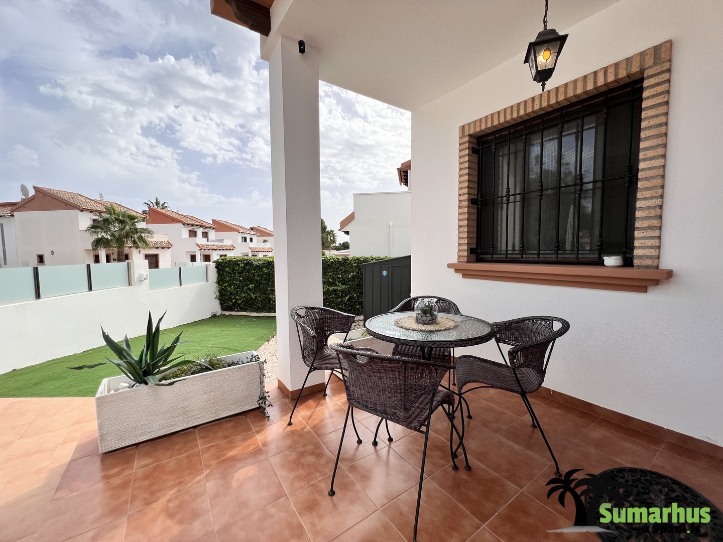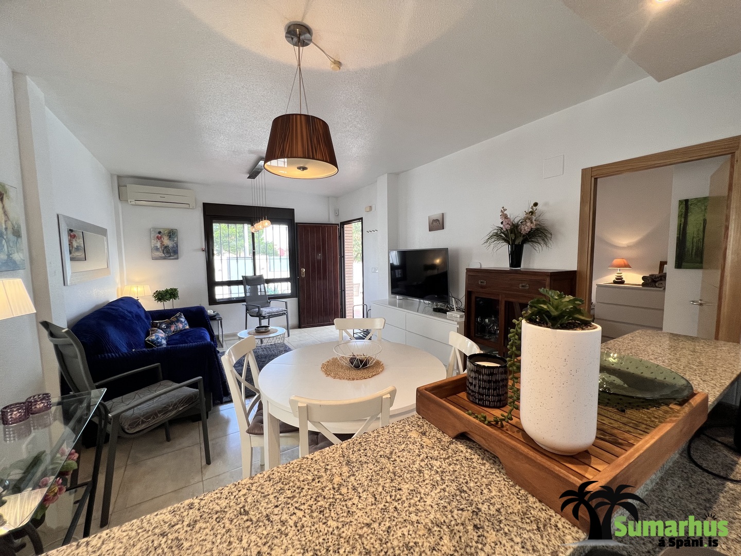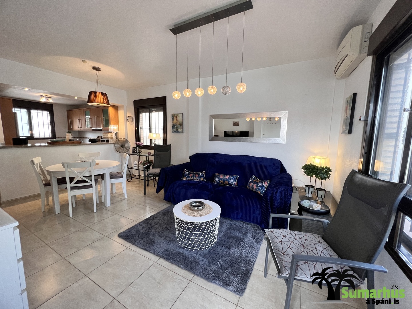 Húsið er ofarlega í Villamartin hverfinu við Maddame Butterfly götuna með fallegum einkagarði og aðgang að sameiginlegum sundlaugargarði. Komið er inní bjarta og fallega stofu með sófa, stólum, borðstofuborði, sjónvarpi, loftkælingu og moskitó net er fyrir gluggum. WiFi internet í gegnum ljósleiðara og margar sjónvarpstöðvar í boði. Út frá stofunni er gengið út í mjög stóran garð sem er við húsið, þar er gott borð, stólar, sólbekkir, kolagrill og gasgrill.