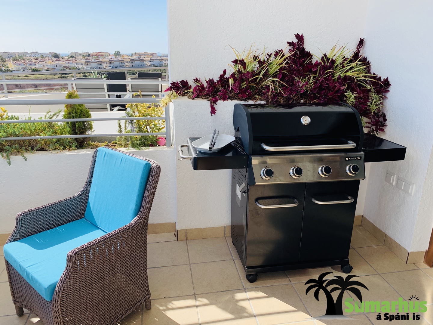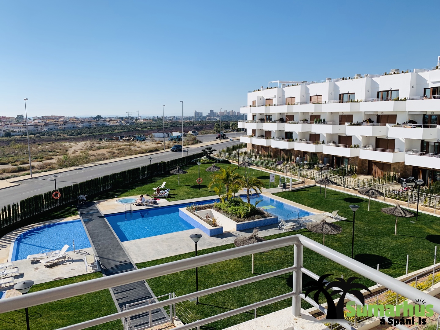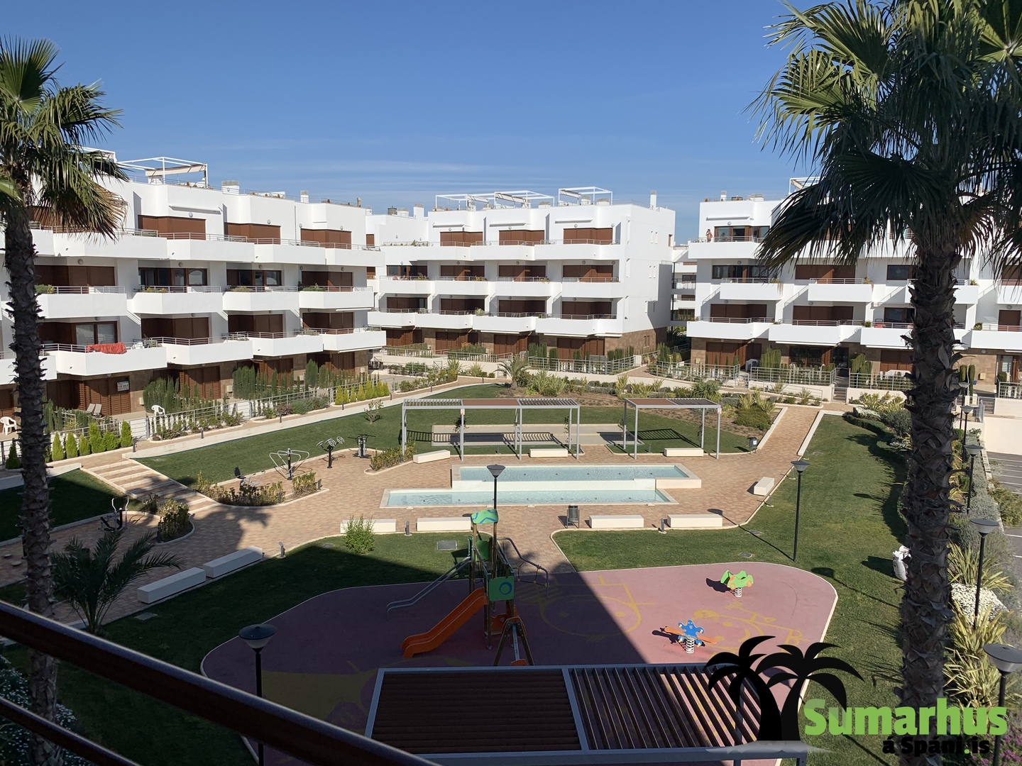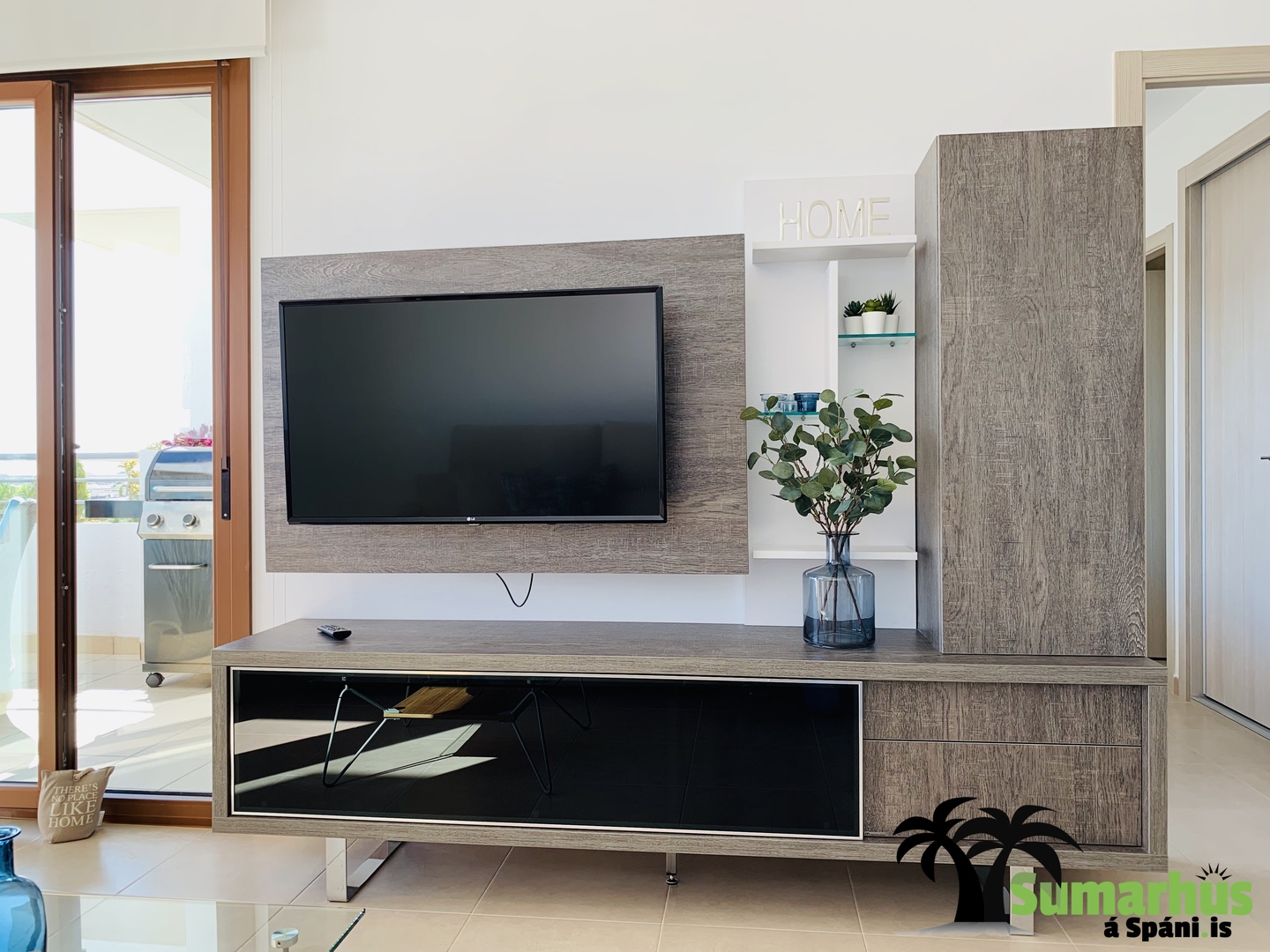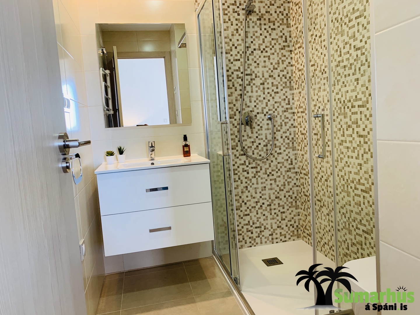 Íbúðin er á annari hæð með góðum svölum í glænýjum íbúðarkjarna í Lomas de Cabo Roig hverfinu og er mjög vel búin. 3 fallegir garðar eru inná milli húsana með sundlaugum, heitum potti, leiksvæði fyrir börnin, líkamsræktartækjum og hafa gestir aðgang að þeim öllum. Hverfið er mjög rólegt og gott, veitingastaðir eru í göngufæri og stutt að skreppa á ströndina, á fimmtudagsmarkaðinn, í La Zenia mallið og niður á göngugötuna í Cabo Roig. Einnig eru margir golfvellir stutt frá hverfinu eins og Campoamor, Villamartin, Las Colinas og Las Ramblas. Íbúðinni fylgir stæði í bílageymslu.