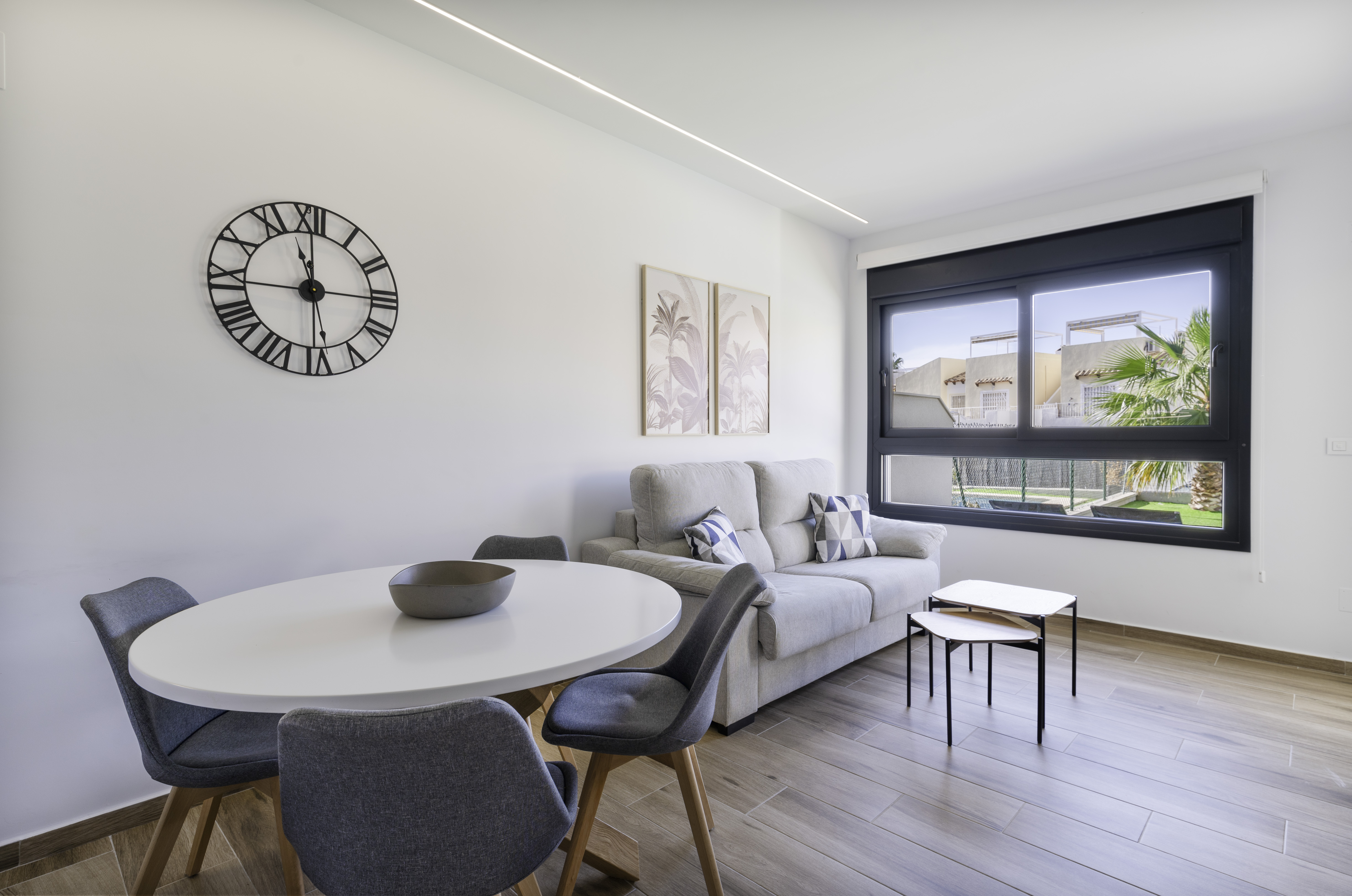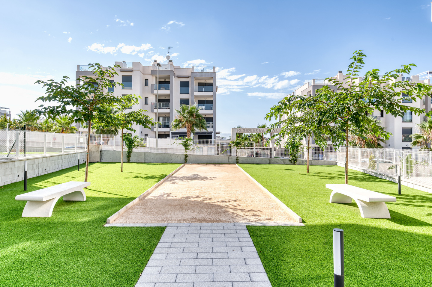 Frá íbúðunum er um 15 min rölt í þjónustukjarnann Villa Martin Plaza þar sem finna má úrval veitingastaða, matvörubúð, barir, apótek og margt fleirra. Um 10 min akstur niður í verslunarmiðstöðina Zenia Boulevard og um 15 min akstur niður á strendur miðjarðarhafsins. Aðeins um 5 min keyrsla á 3 golfvelli – Villa Martin – Las Ramblas og Campoamor – en úrval annarra golfvalla í um 20 min akstri.